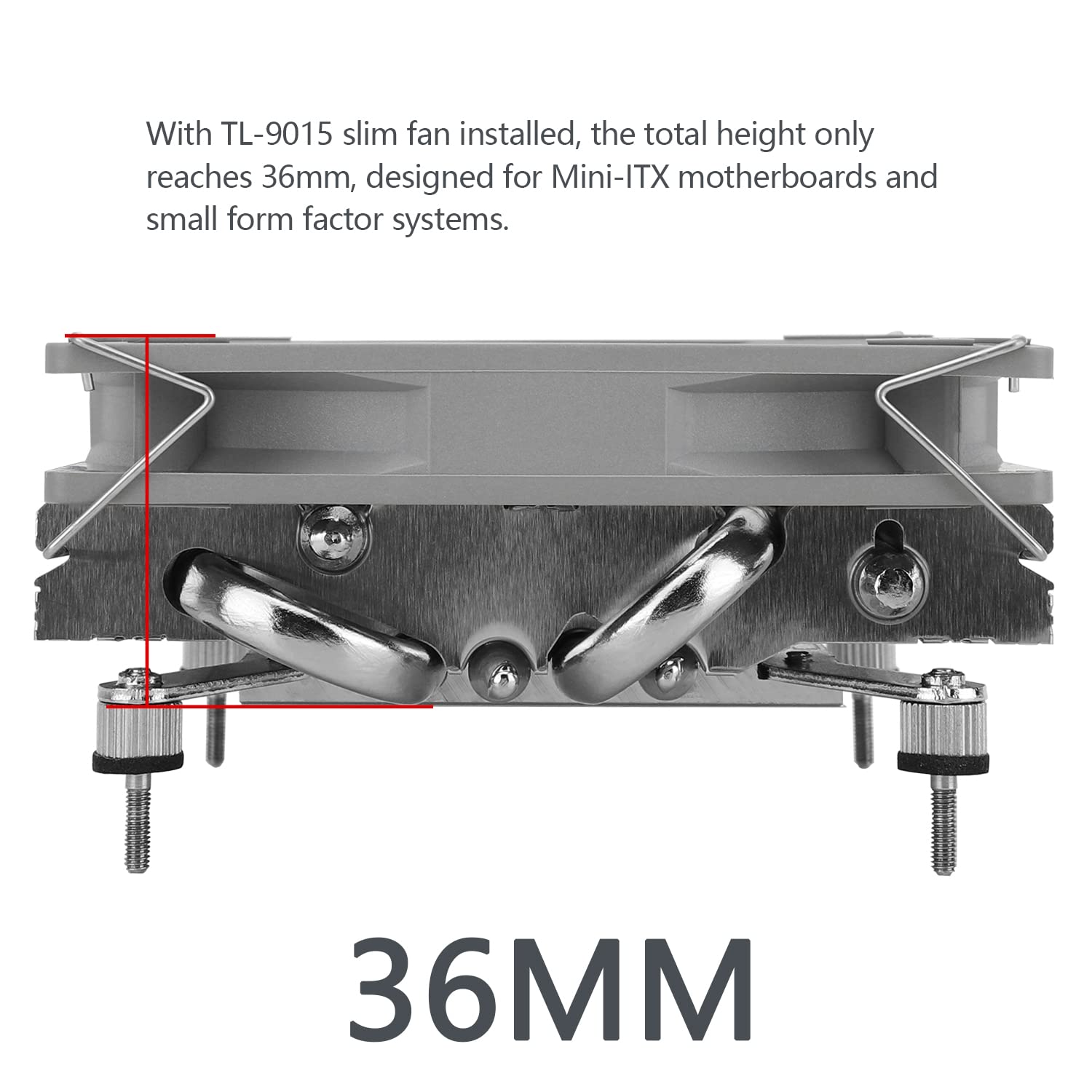 - [Good heat dissipation] The 36mm height downward CPU cooler is composed of a 92mm high-performance cooling fan, a pure copper base, and 4 pure copper heat pipes, which quietly dissipates the high temperature of the CPU, and is suitable for the use of ITX motherboards and small chassis.